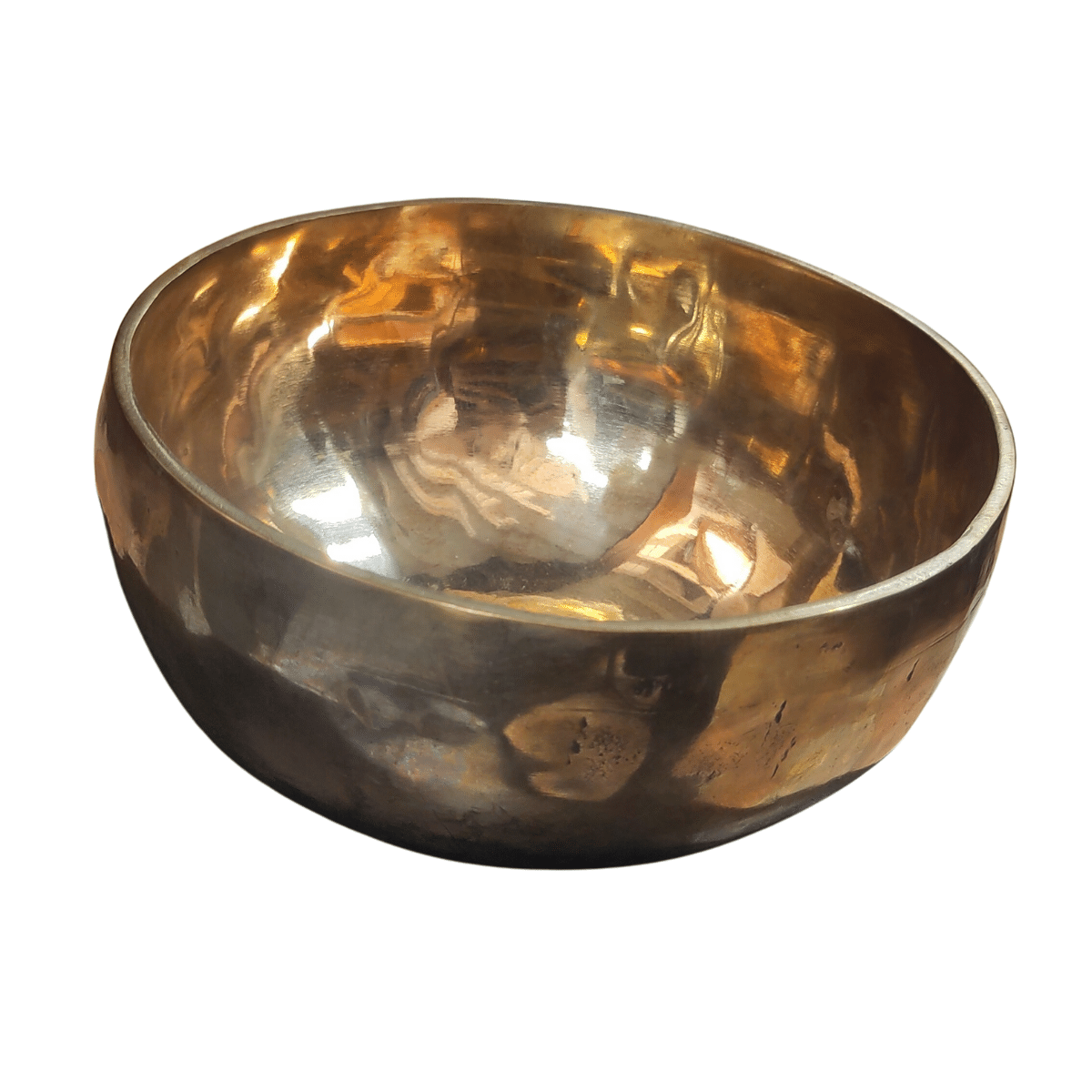 Les bols que nous proposons sont constitués de 7 métaux : or, argent, mercure, cuivre, fer, étain, plomb. Ils viennent de la région du Kérala en Inde, et sont de la famille des bols martelés. Ces derniers sont de nettement meilleure qualité que les bols tournés ou moulés, ils développent un son plus riche en harmoniques.