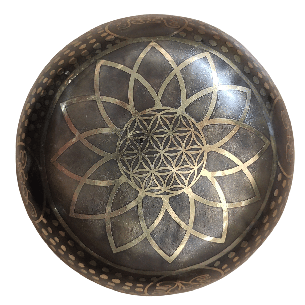 Ces bols présentent la particularité d’avoir une ornementation représentant des symboles religieux sanscrits ou des images de dieux et déesses du panthéon indien ou tibétain. Ces incrustations sont réalisées au Népal et apportent une très belle touche esthétique à ces bols chantants et selon les symboles utilisés peuvent ajouter un ressenti énergétique supplémentaire.