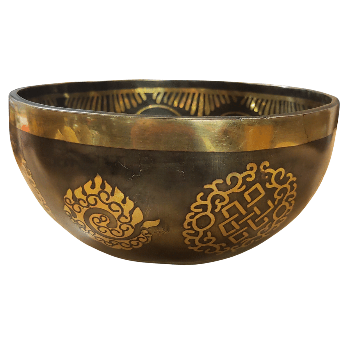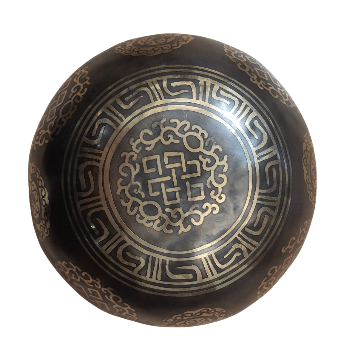 Ces bols présentent la particularité d’avoir une ornementation représentant des symboles religieux sanscrits ou des images de dieux et déesses du panthéon indien ou tibétain. Ces incrustations sont réalisées au Népal et apportent une très belle touche esthétique à ces bols chantants et selon les symboles utilisés peuvent ajouter un ressenti énergétique supplémentaire.