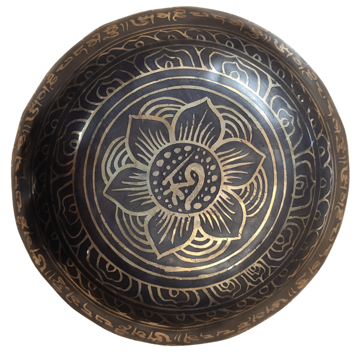 Ces bols présentent la particularité d’avoir une ornementation représentant des symboles religieux sanscrits ou des images de dieux et déesses du panthéon indien ou tibétain. Ces incrustations sont réalisées au Népal et apportent une très belle touche esthétique à ces bols chantants et selon les symboles utilisés peuvent ajouter un ressenti énergétique supplémentaire.