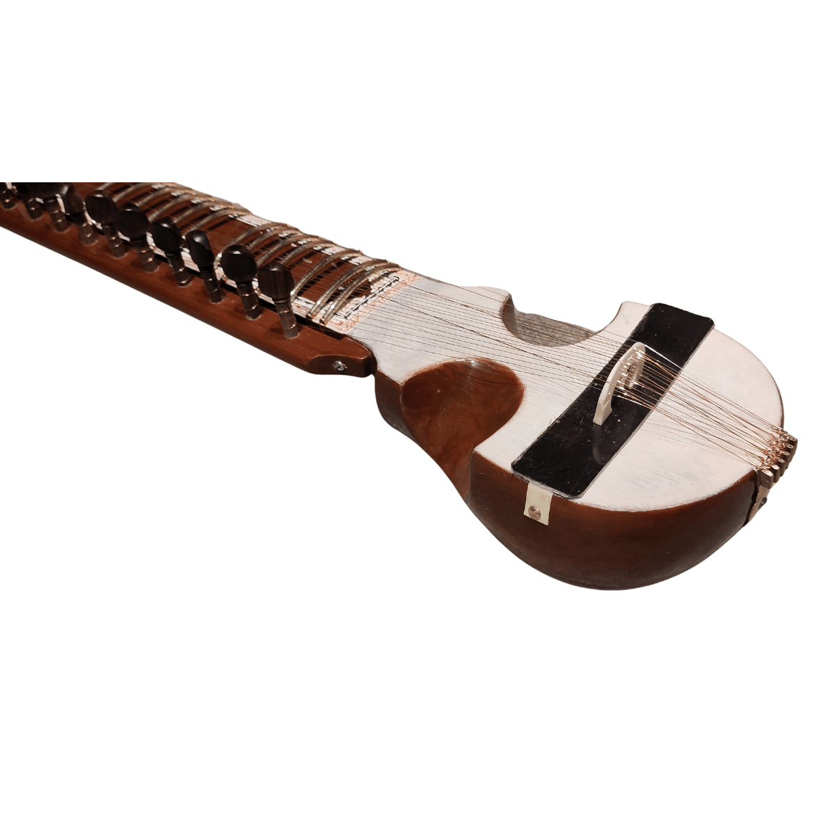 - Ce très bel esraj de concert, de qualité professionnelle, a été réalisé par le maître-luthier Monoj Kumar Sardar à Calcutta.