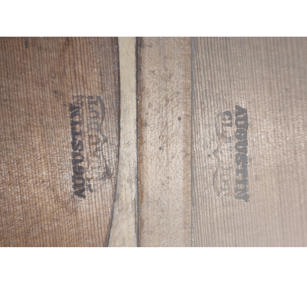 - Double inscription au fer « Augustin Claudot » visible depuis l’ouverture de la rosace