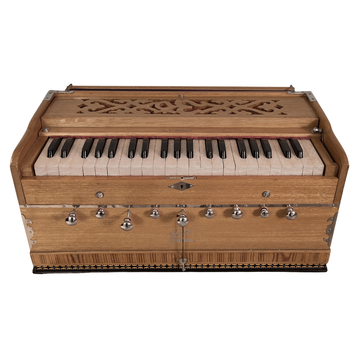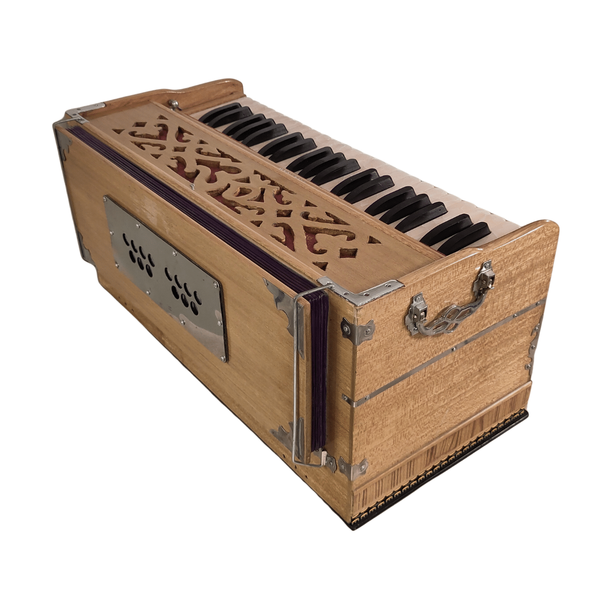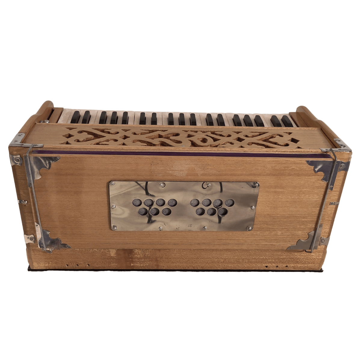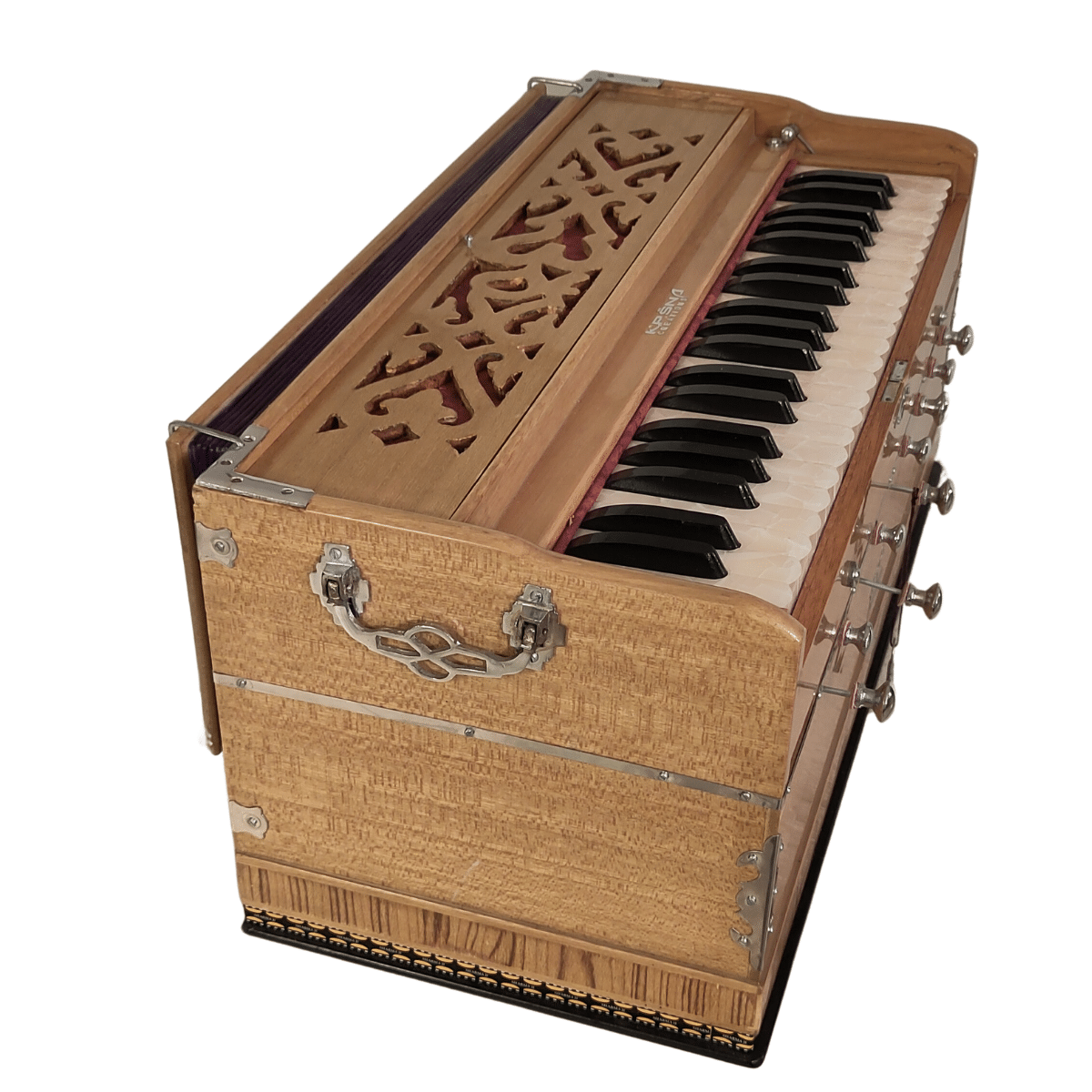 Cet Harmonium Bhakti possède 2 rangées de lames, une grave et une médium.