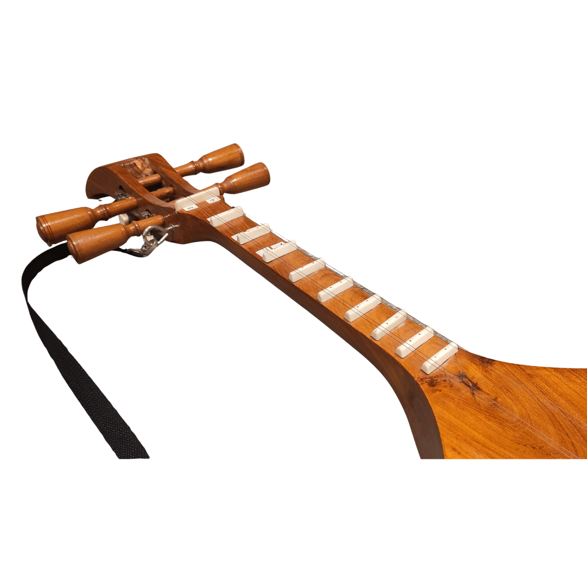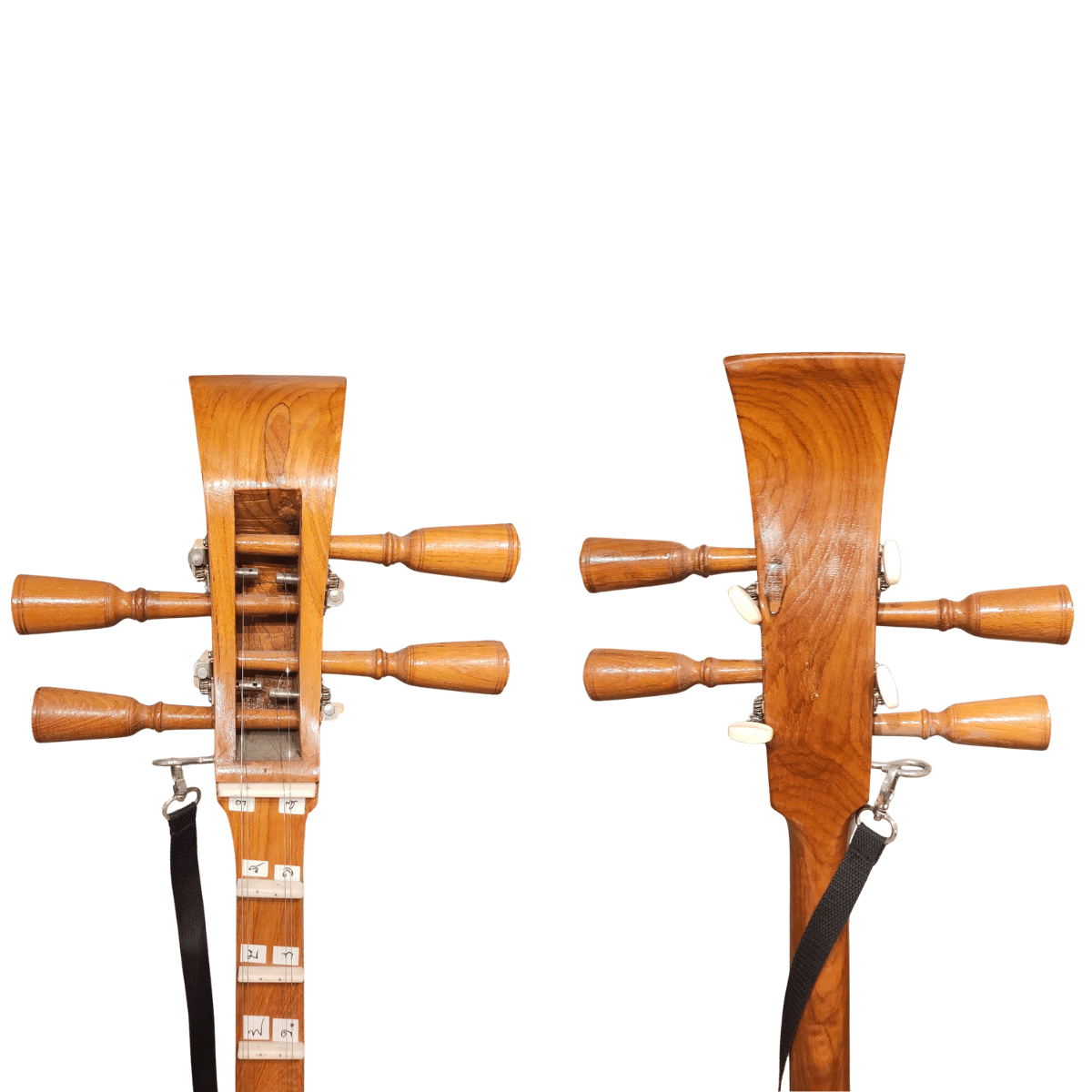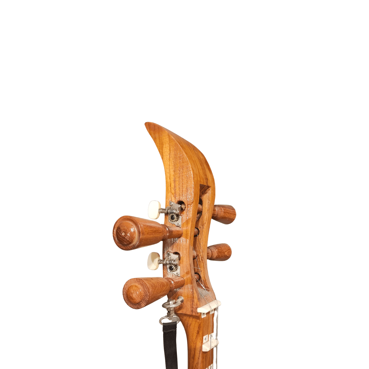 - Chevilier à 4 chevilles latérales en bois sculpté et 4 mécaniques individuelles sur lesquelles on retrouve les cordes