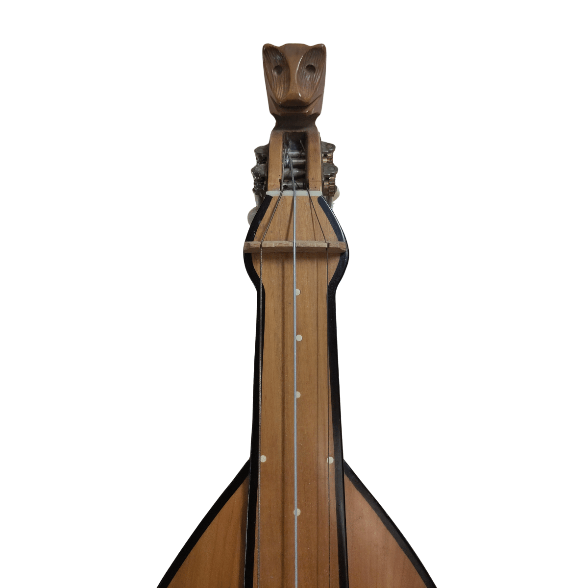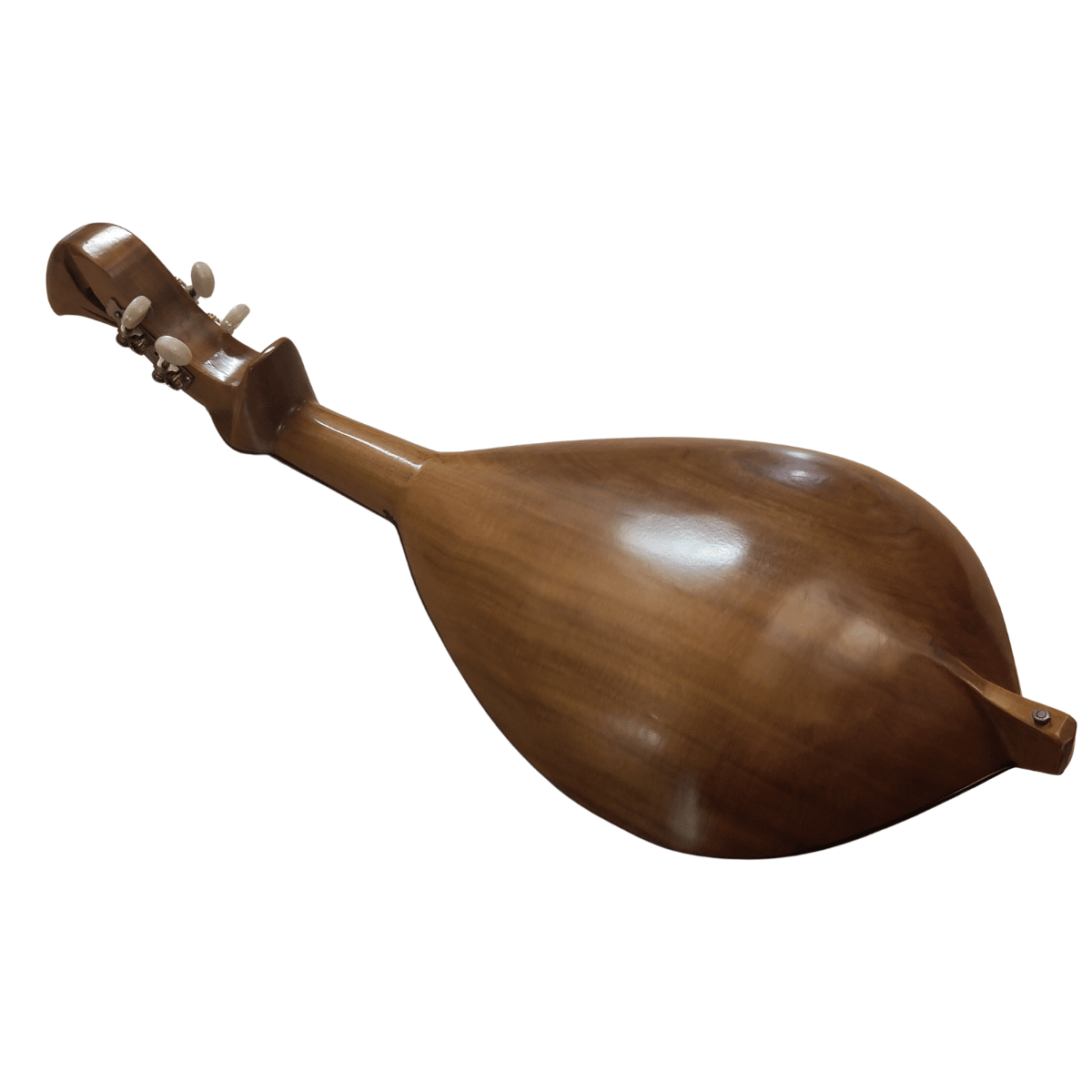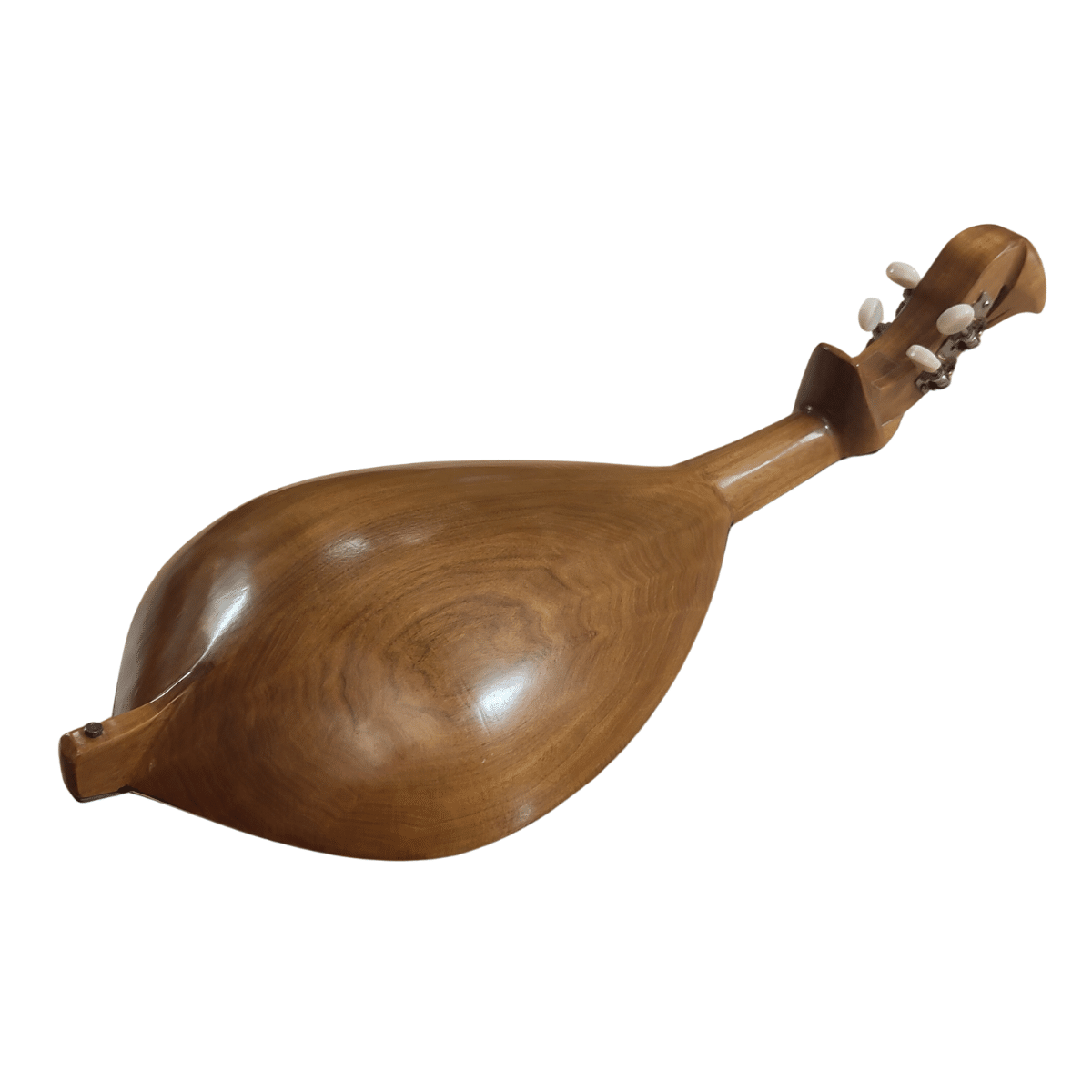 La lyra crétoise traditionnelle possède généralement trois cordes, autrefois en boyau, aujourd’hui souvent en métal ou en matériaux modernes. Sa caisse piriforme est sculptée dans un seul bloc de bois – noyer, mûrier ou autres essences locales, et parfois des décors sobres ou des rosaces stylisées. L’archet, parfois orné de grelots, permet de produire un son à la fois perçant et chaleureux, idéal pour porter la mélodie au-dessus des percussions et du laouto crétois.