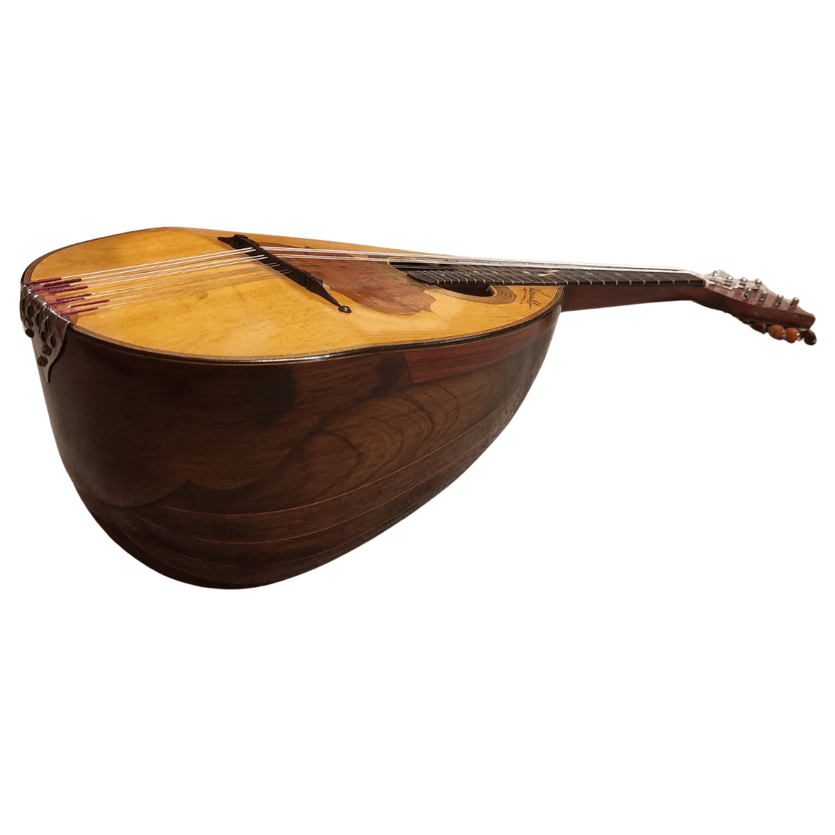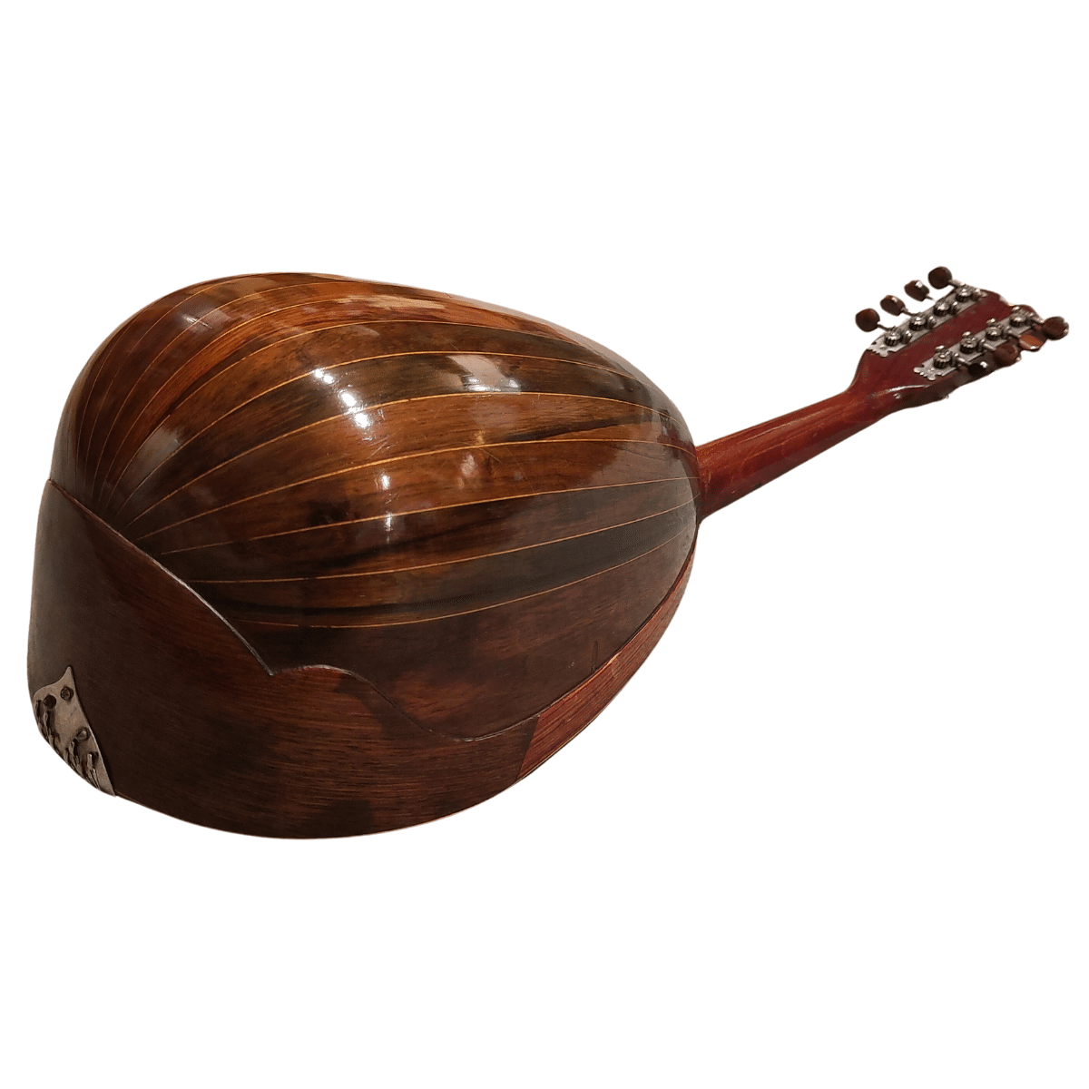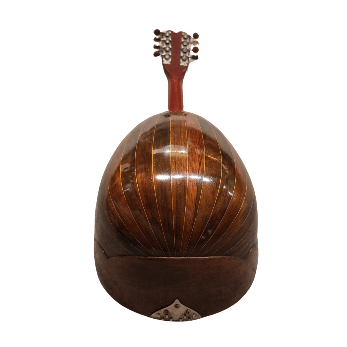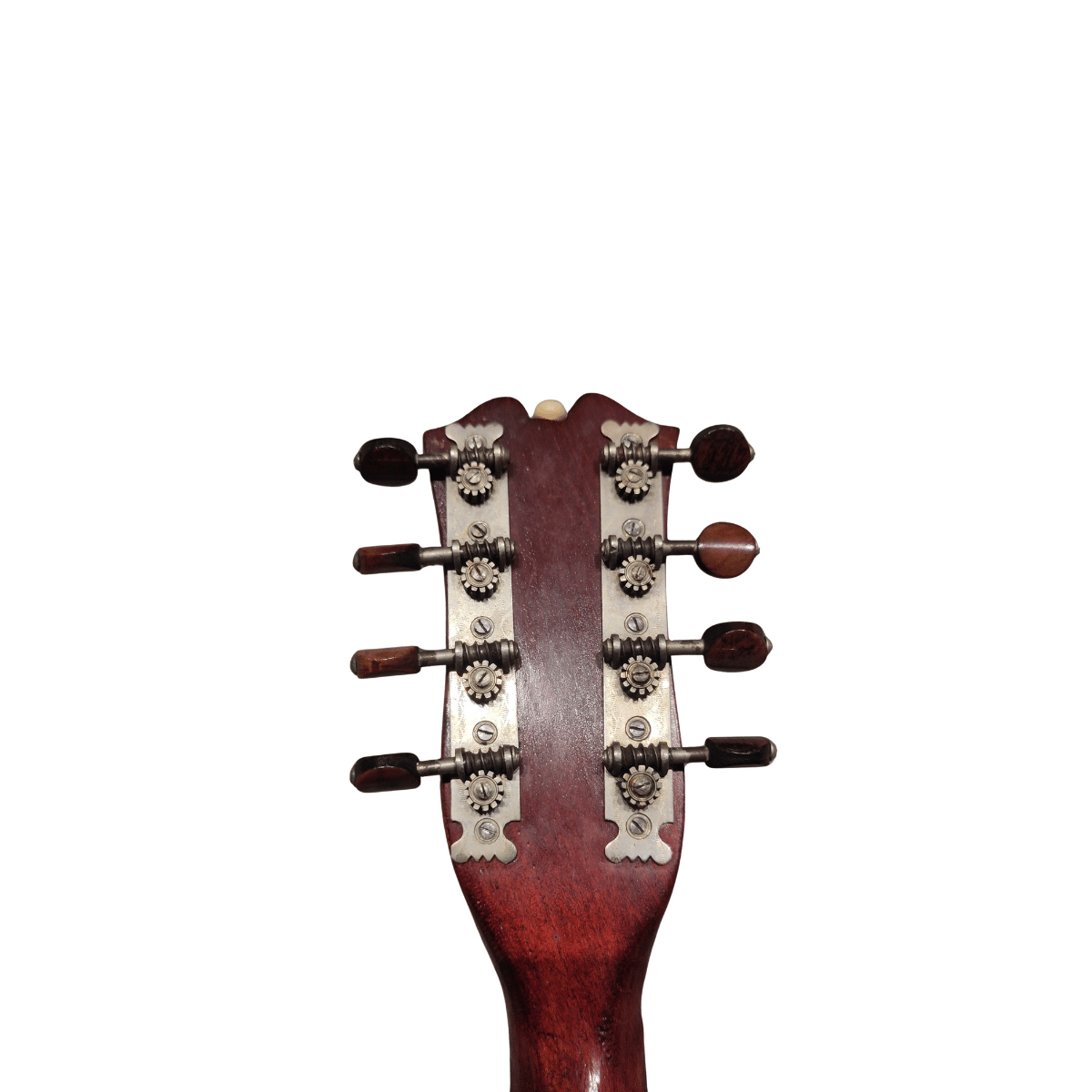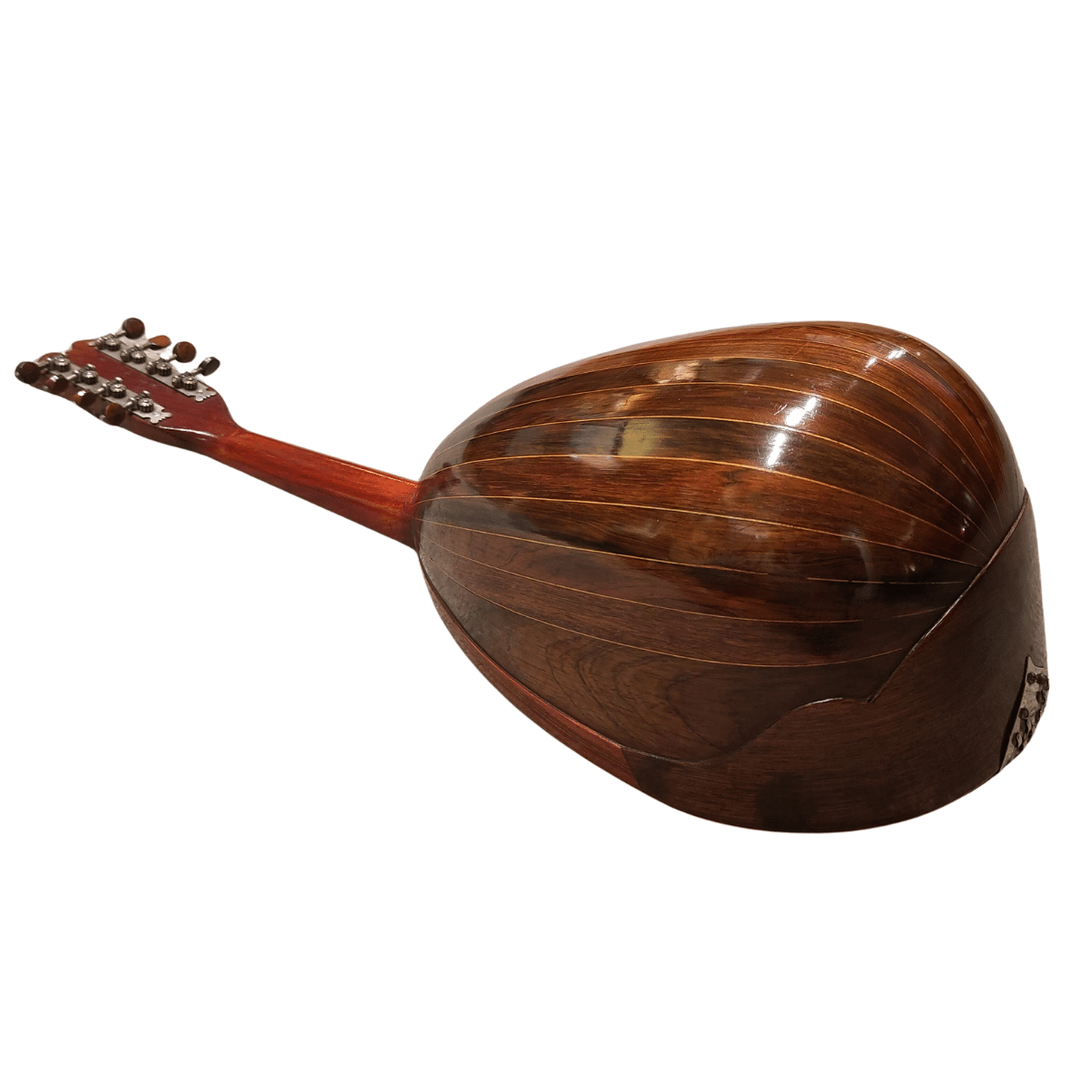 - Cette belle mandoline dispose d’un fond bombé à 17 côtes de palissandre séparées par un filet d’érable.