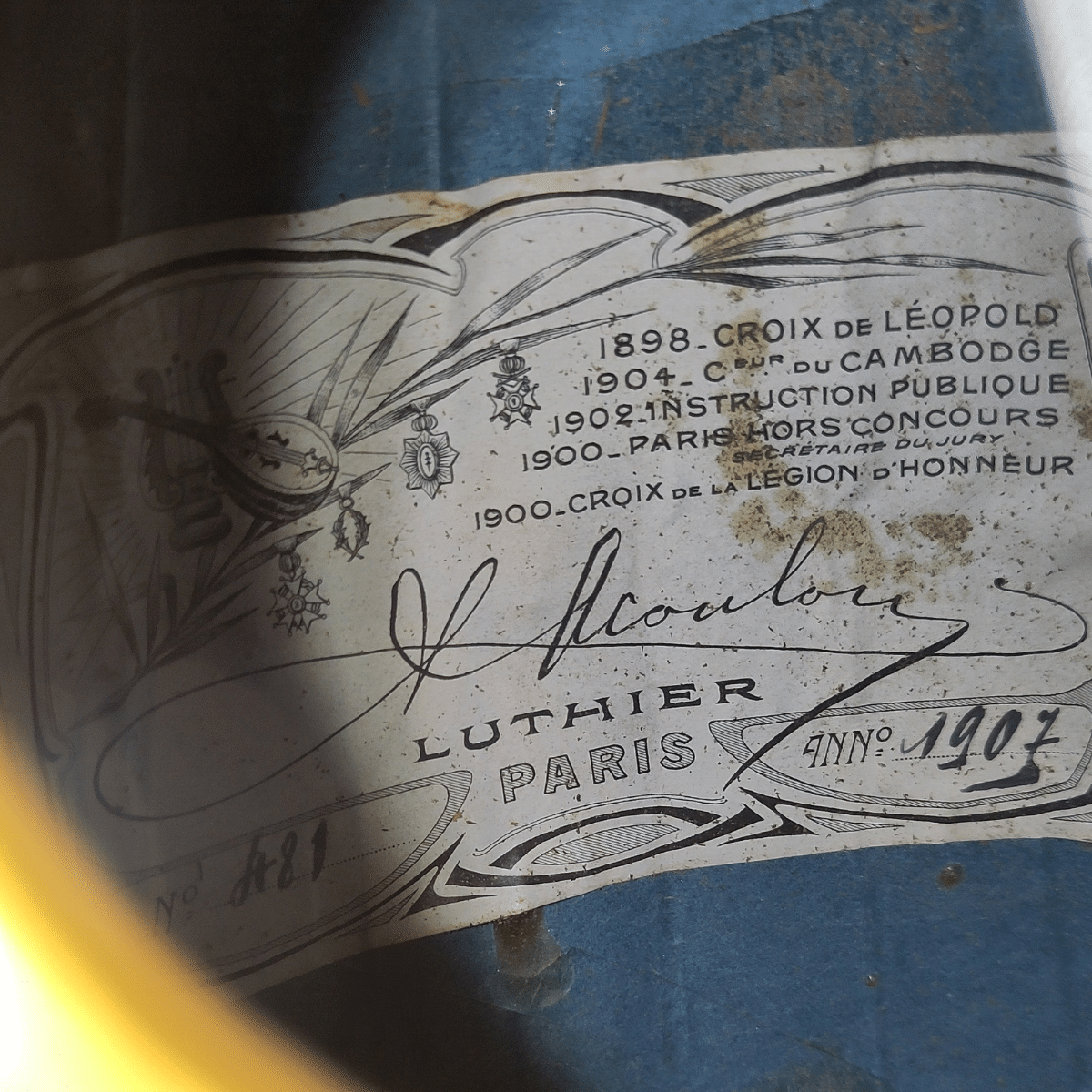 - Mandoline ancienne signée Acoulon, maître luthier parisien. Cette mandoline porte le numéro 481.