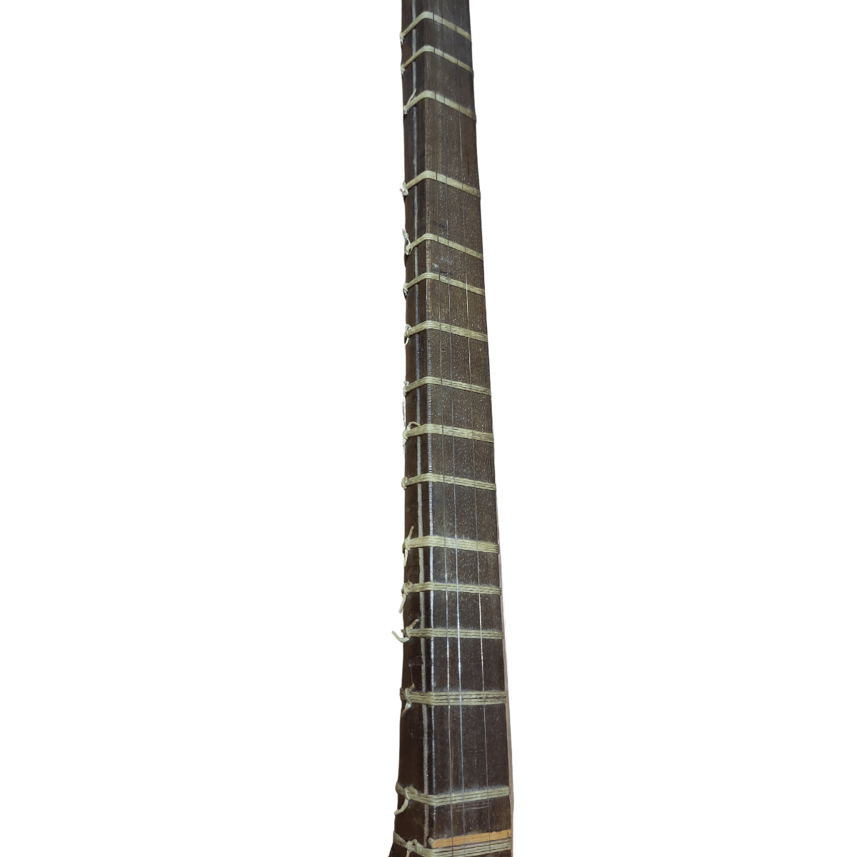 Le long manche, en fruitier ou en noyer, porte 25 à 27 frettes en boyau noué, disposées de façon non régulière afin de permettre l’exécution des quarts de ton caractéristiques de la musique traditionnelle iranienne.
