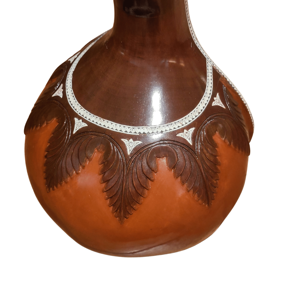 - Calebasse faite d’une courge sur laquelle vient se greffer un manche en bois dur. Ce manche est creux sur toute sa longueur ce qui contribue à donner un maximum de résonance à l’ensemble.