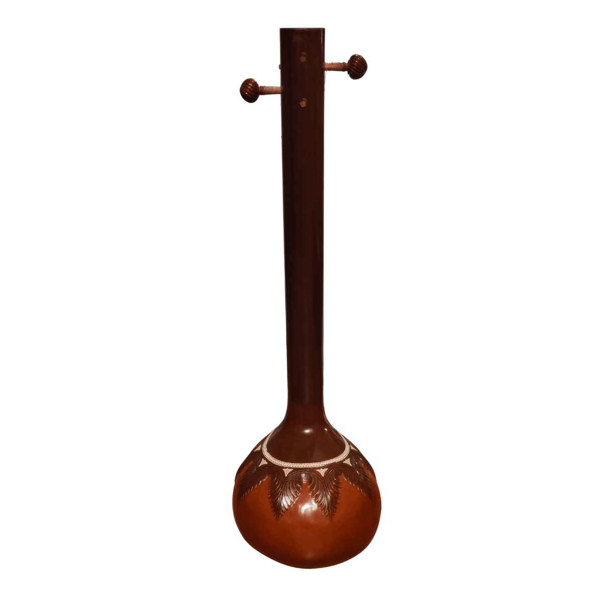 Ce modèle de Tampoura buli 4 cordes avec calebasse est fabriqué de manière identique aux grandes tampouras mâles classiques: la caisse de résonance est constituée d’une calebasse naturelle, surmontée d’un manche creux en bois dur.