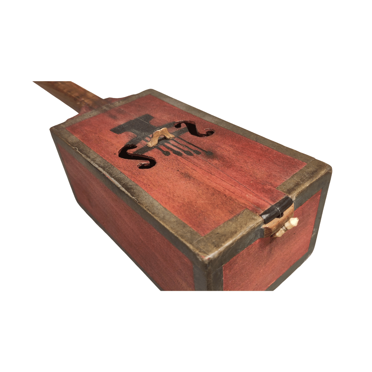 - Le jeu mélodique se fait sur une corde métallique réglable par une cheville en bois.