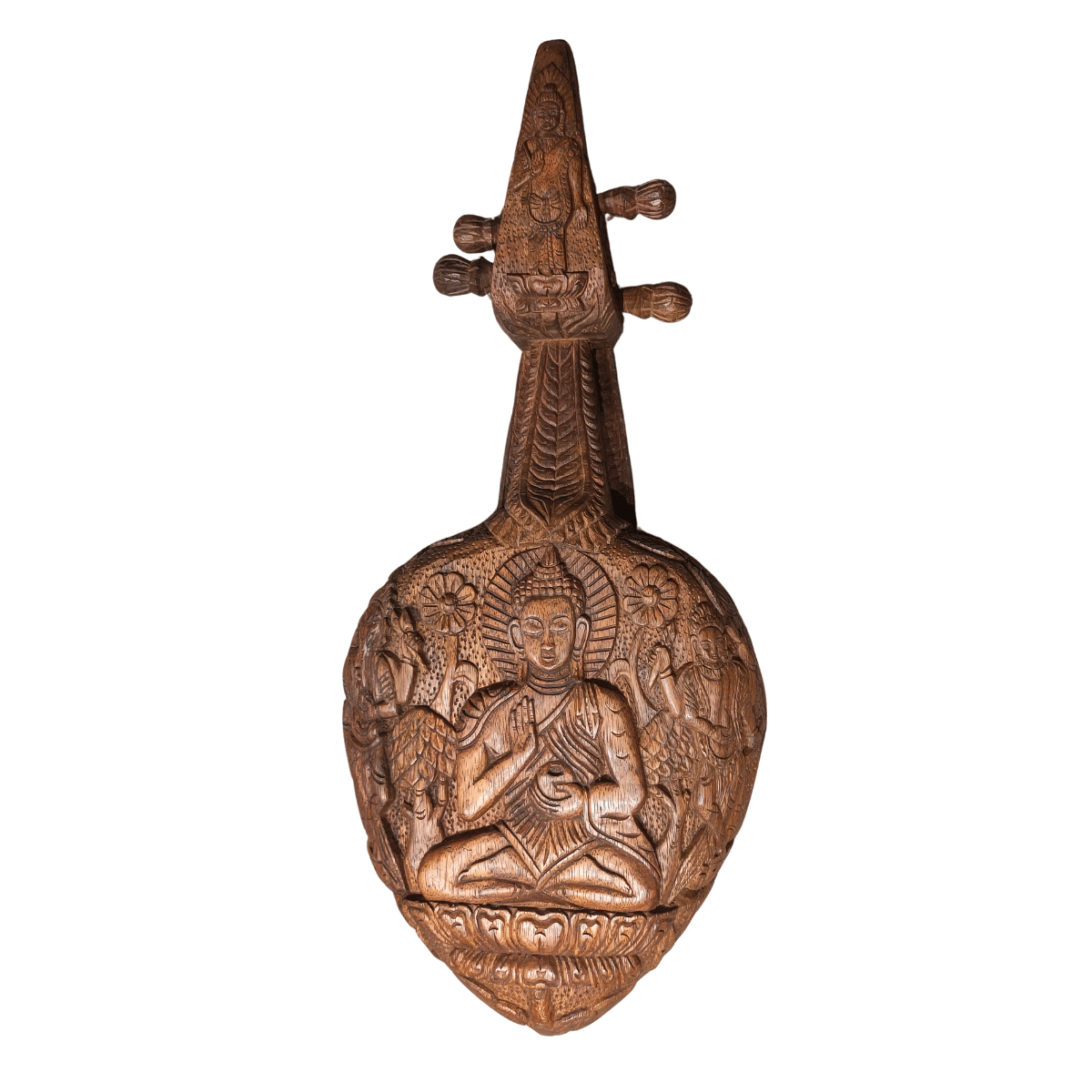 - Bois sculpté à riches décors de Bouddha, Ganesh et tête de singe