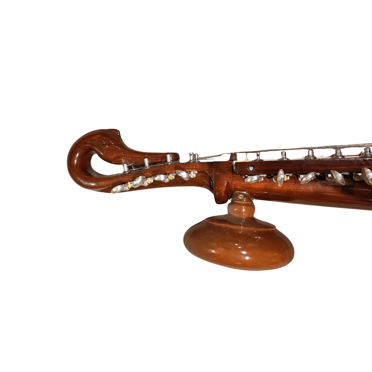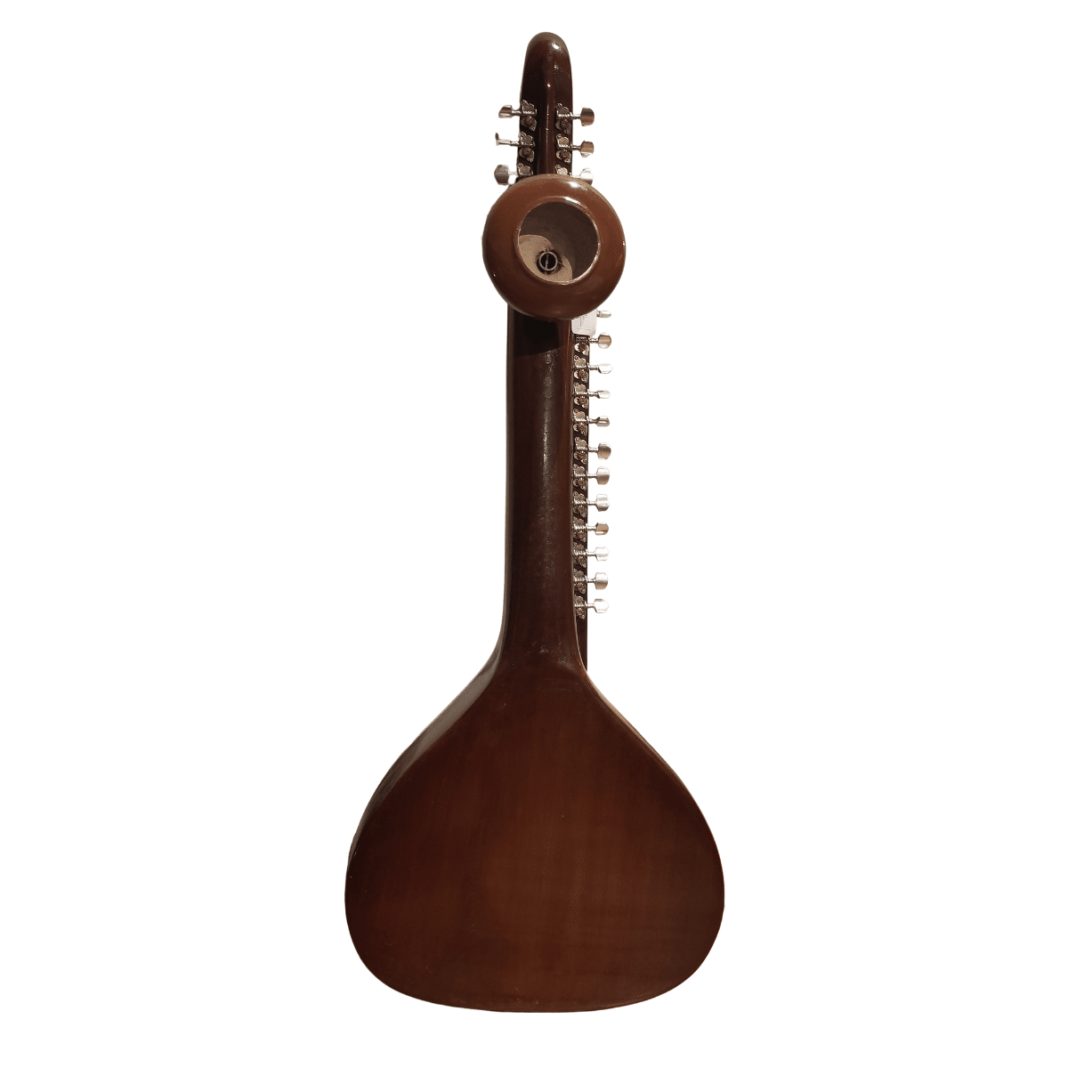 - Équipé de 21 cordes: 5 cordes principales, un bourdon fin, 2 chirakis (cordes de rythme) et 13 cordes sympathiques